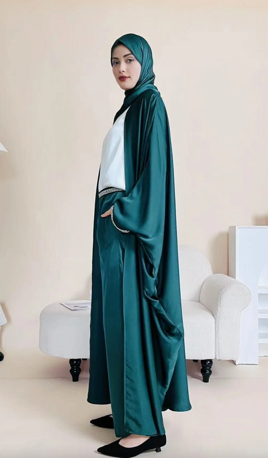 Ensemble Abaya en satin avec pompons et diamants - Mariam's collection